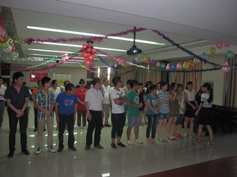 气球、彩带、蛋糕,这里是幸福的殿堂;欢声、笑语、音乐,这里是快乐的海洋;同事、朋友、兄弟姐妹,这里是温暖的归宿。其乐融融,共度温馨时光!