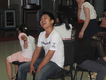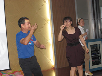 图7:“四人1脚” 图8:心有灵犀一点通,比划猜